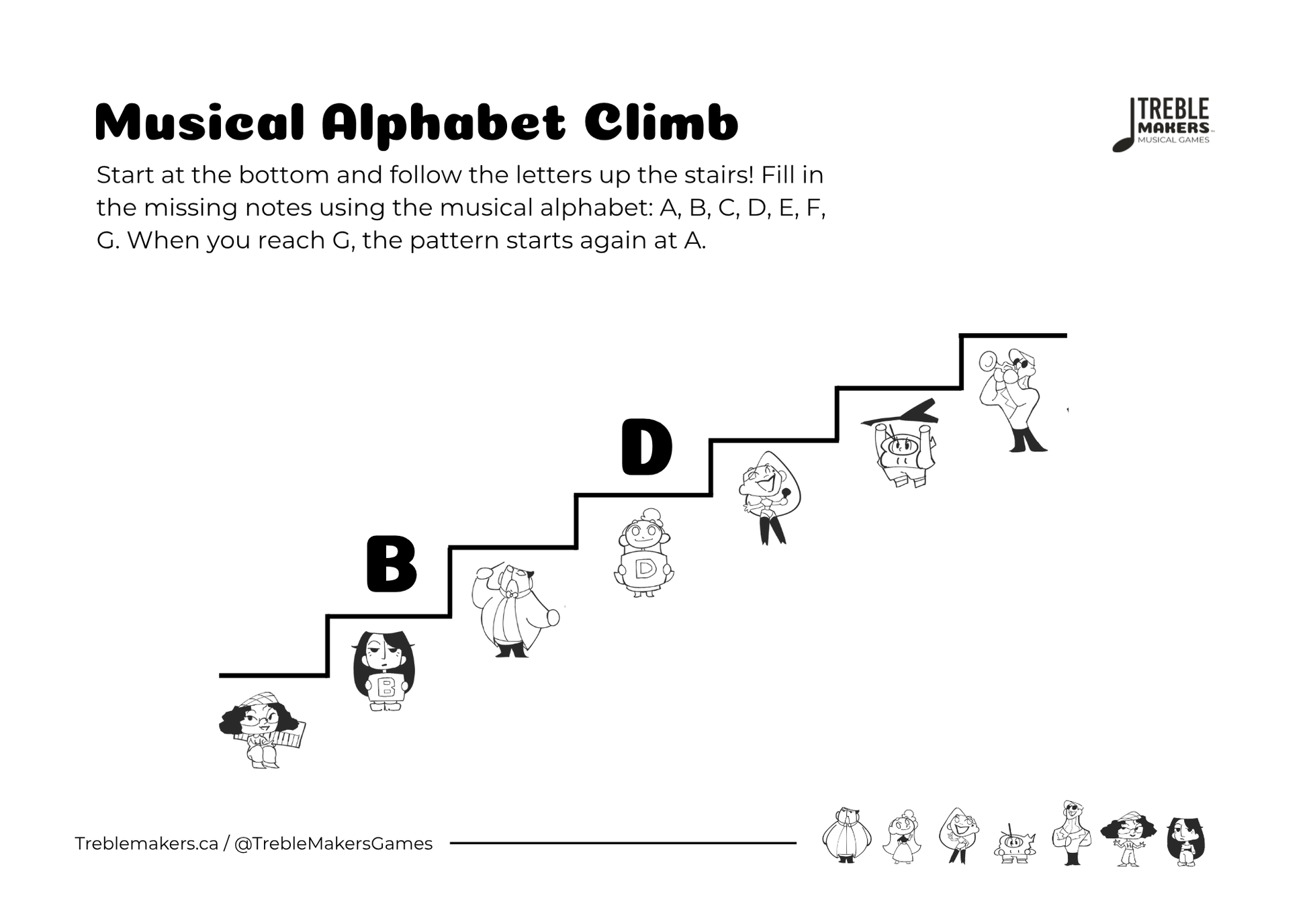 Music Alphabet Climb – Note Sequencing Activity Sheets - Set 1