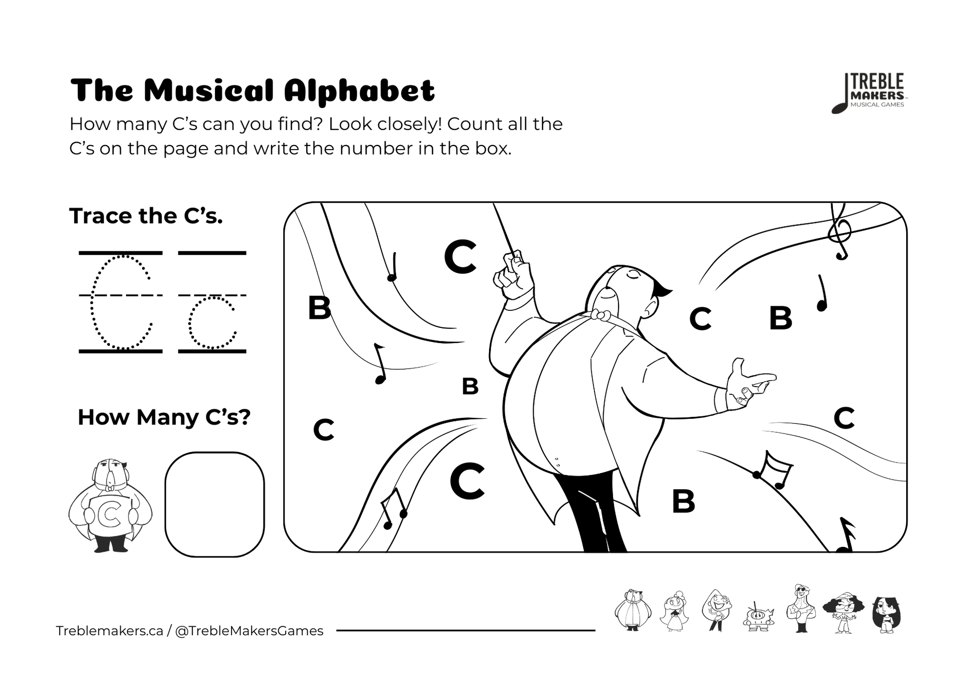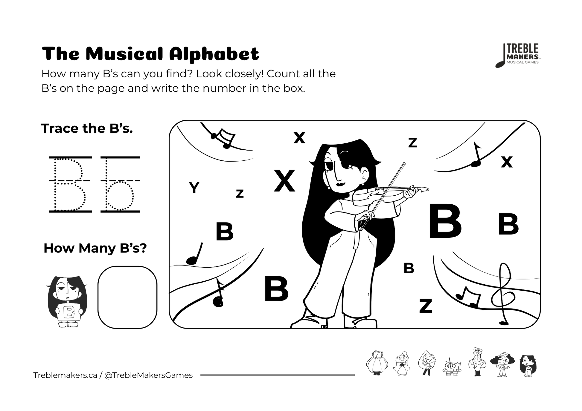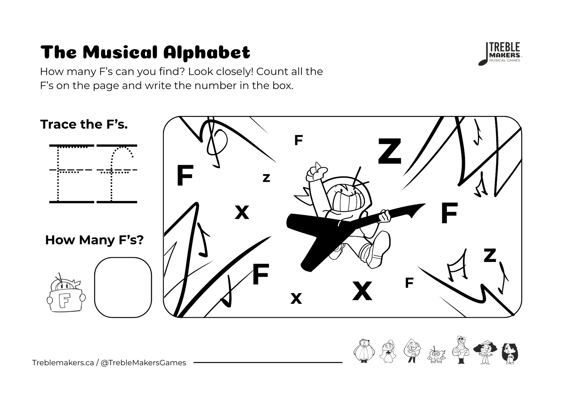 Each page focuses on one letter from A to G and invites kids to trace, find, and count musical notes in a character-filled scene inspired by Scale Runner, our music theory card game. It’s a creative way to build note recognition, letter formation, and early music skills.