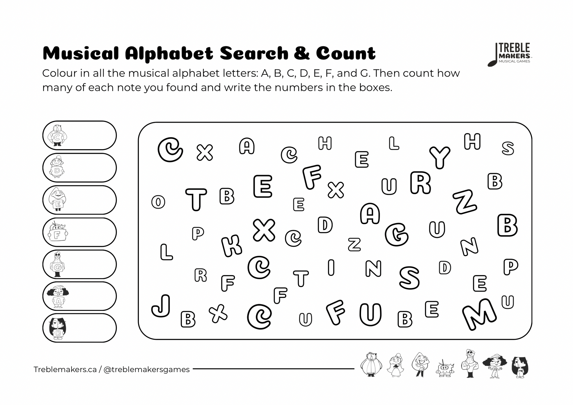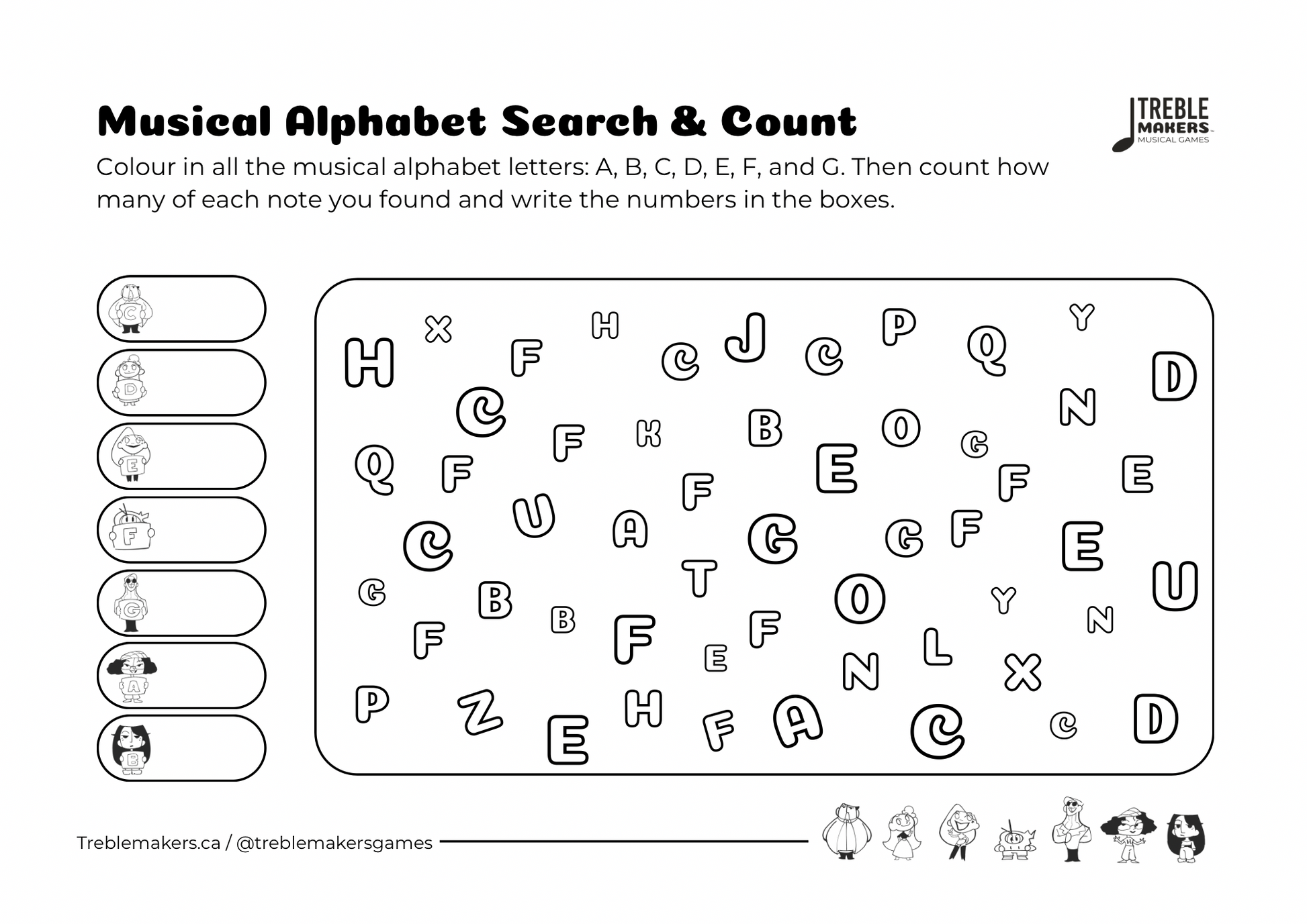 Spot the letters of the musical alphabet and sharpen music fluency with this fun search-and-count activity!